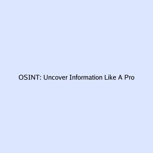 OSINT: Uncover Information Like A Pro